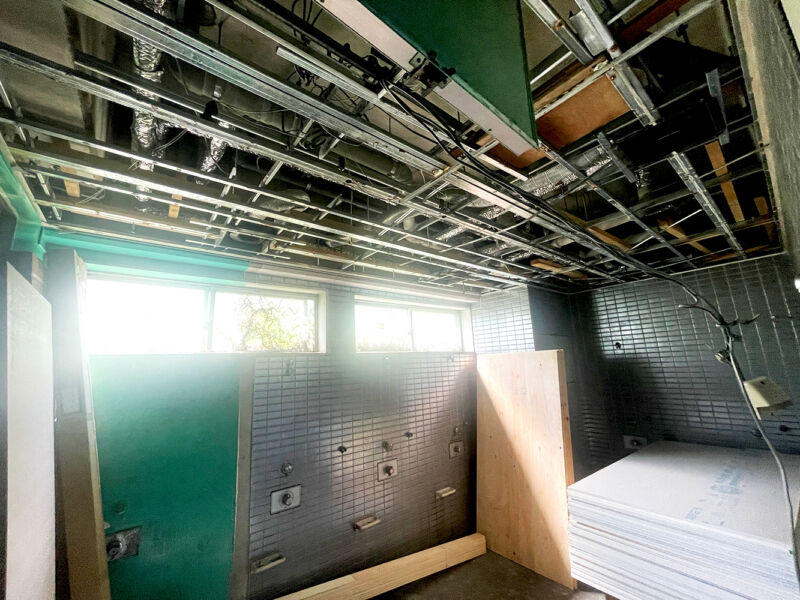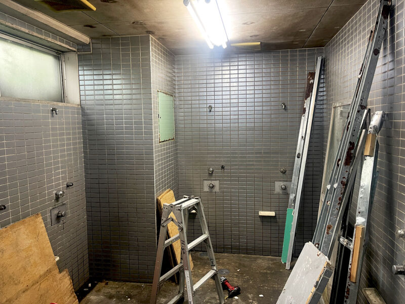 We had an unused shower room on the 1st floor of our factory. It had become a laundry machine storage area after the person who used it retired a few years ago. We decided to transform this space into a comfortable area during the renovation.