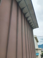 Kitakyushu City, Fukuoka Prefecture, Japan, Jodo Shinshu Hongwanji School Shogyoji Temple used high-strength, high-corrosion-resistant design louvers that take advantage of the properties of duplex stainless steel (NSSC 2120_®️) for the exterior portion of the building’s barn building.