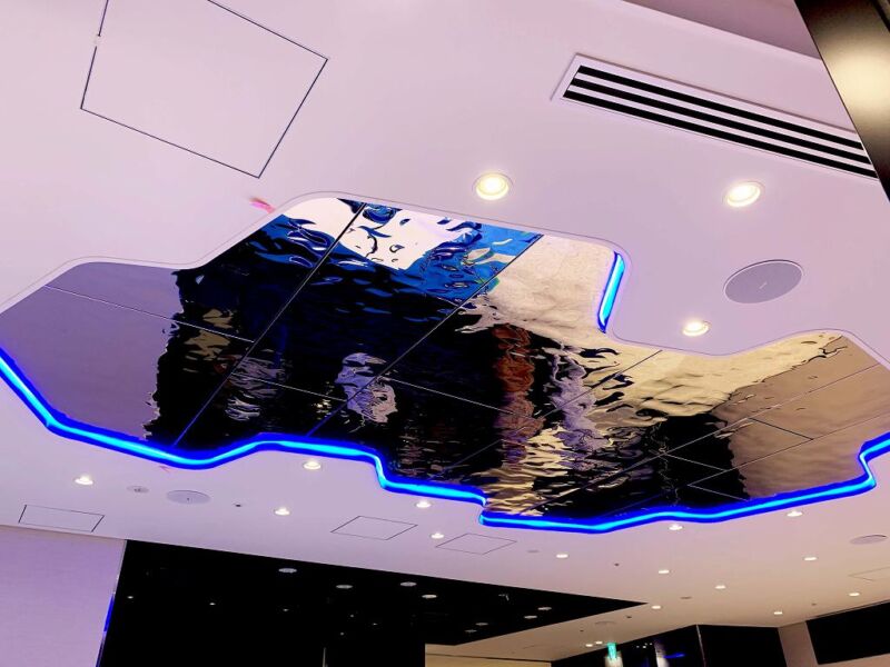 3D stainless steel mirror JEUX D’EAU was adopted for the ceiling of a hotel lounge.