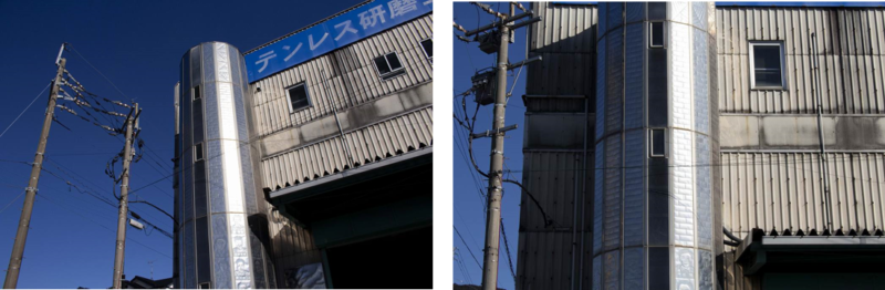 この円形状のステンレス外壁は30年以上経っています。弊社の工場のパネルです。ほぼメンテナンスをしていないです。30年以上経っても赤茶けたり、ボロボロになったりはしていません。ちなみに、工場は高速のインターチェンジのすぐそばです。