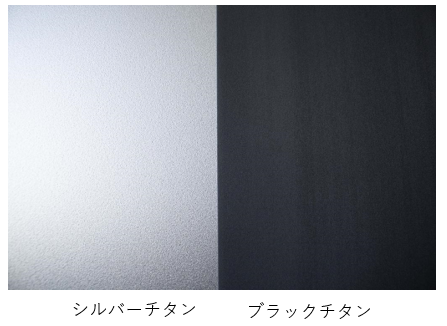 ブラックチタンは従来の意匠表現で用いる、“電解発色”や“イオンプレーティング蒸着”等の製法は用いていません。 もちろん塗装をして黒色化しているのでもありません。表面に微細な環境を創り上げる事で黒色化します。