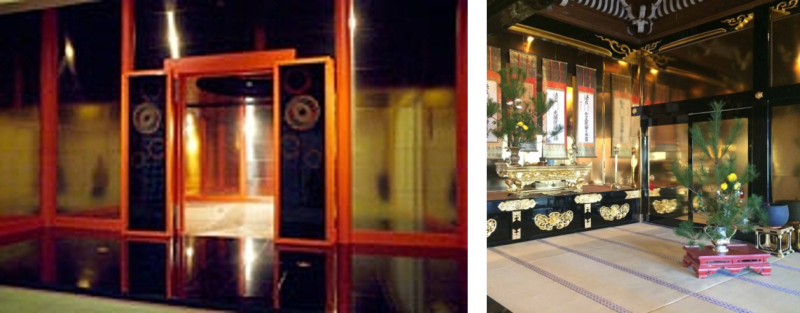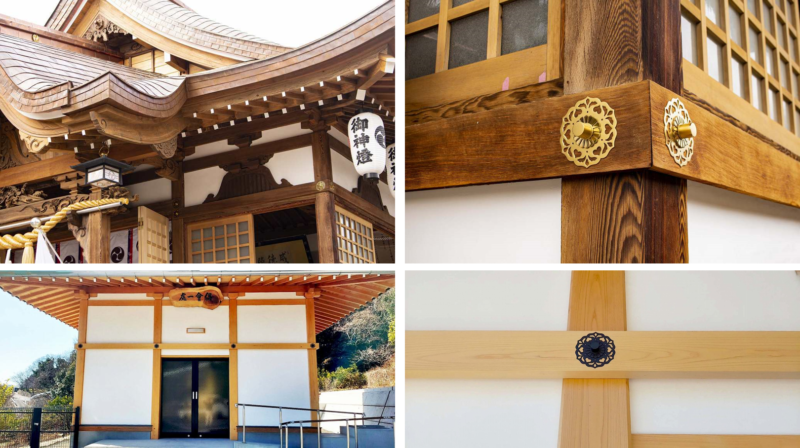 広島県の神社様やお寺様にチタン性の飾り金具“”六葉“”を取り付けていただきました。