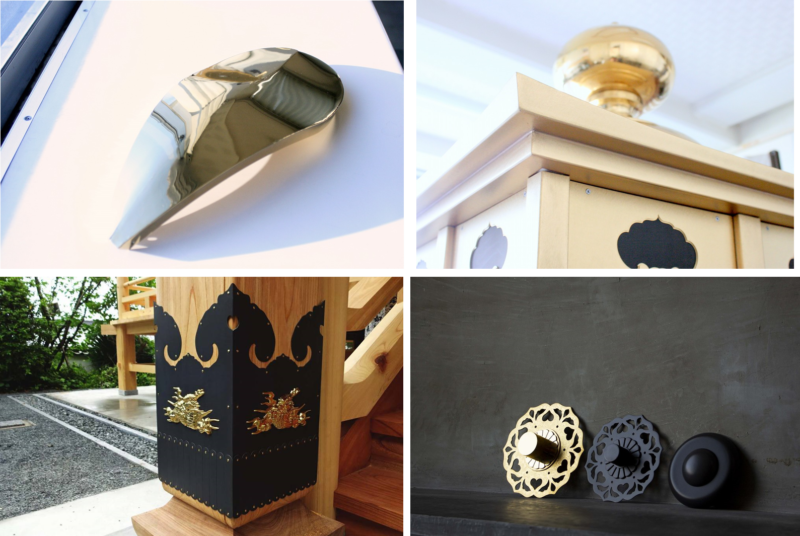 それでは、社寺仏閣の用途ではチタンは屋根だけなのかということを思われる方がおられるかと思いますが、最近では飾り金具を中心として長期耐久性の高いチタン金具も開発採用が進んでまいりました。