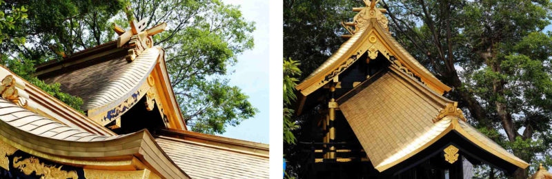 熊本県にある黄金純チタンの屋根をもつ、龍王神社様。