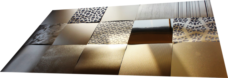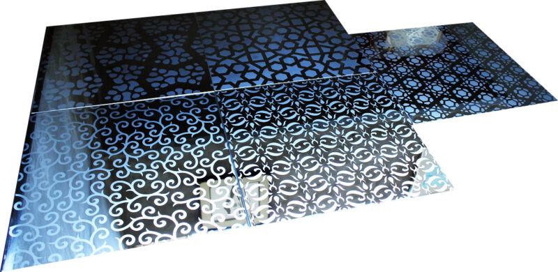 中東諸国で日本のステンレス複合板を提案する際に用いた手法は、アラベスク柄をステンレス鏡面上に配置することです。