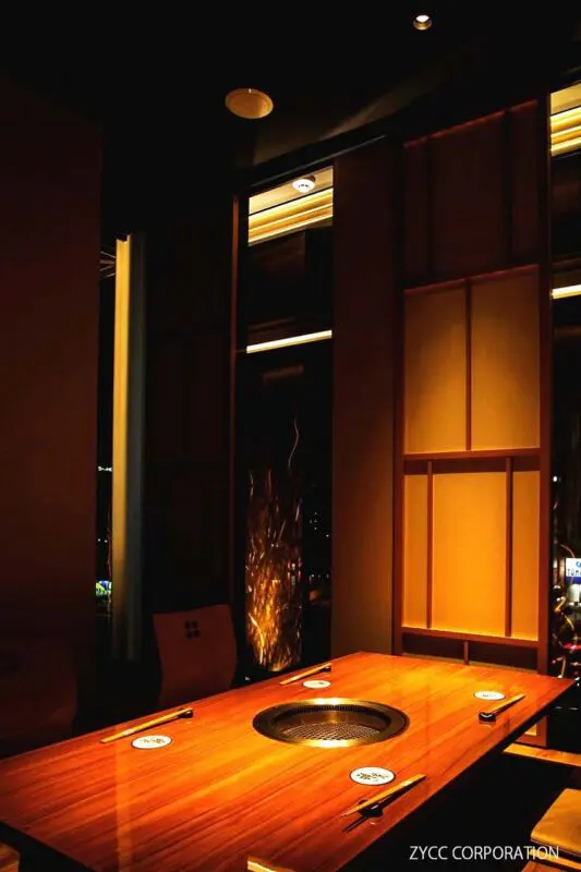和風内装とステンレス鋼をコンビネーションさせる意匠は見事です。