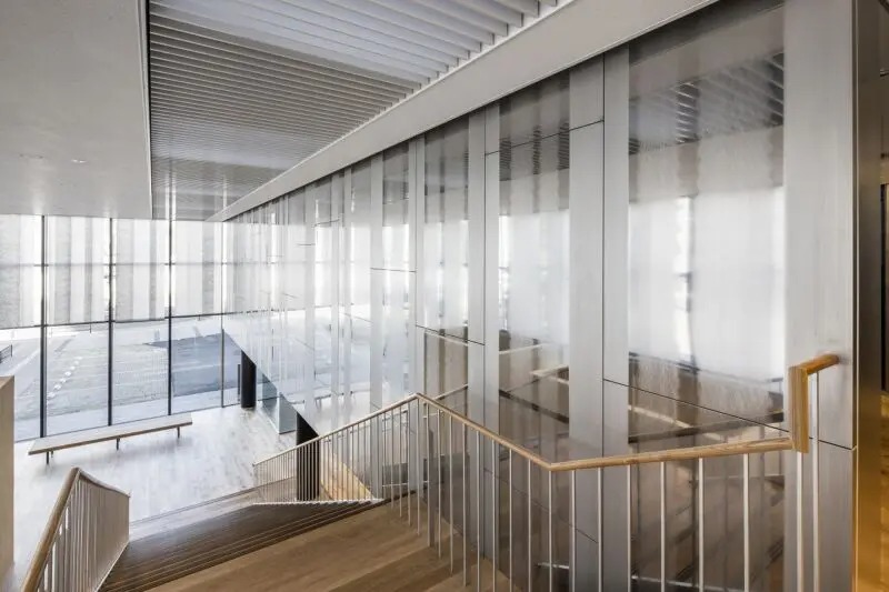 さらに、屋外と屋内のステンレス鋼種を変えることで素材色を変え、外壁は力強く、内壁は優しくエレガントな印象を醸し出すデザインとなっています。
