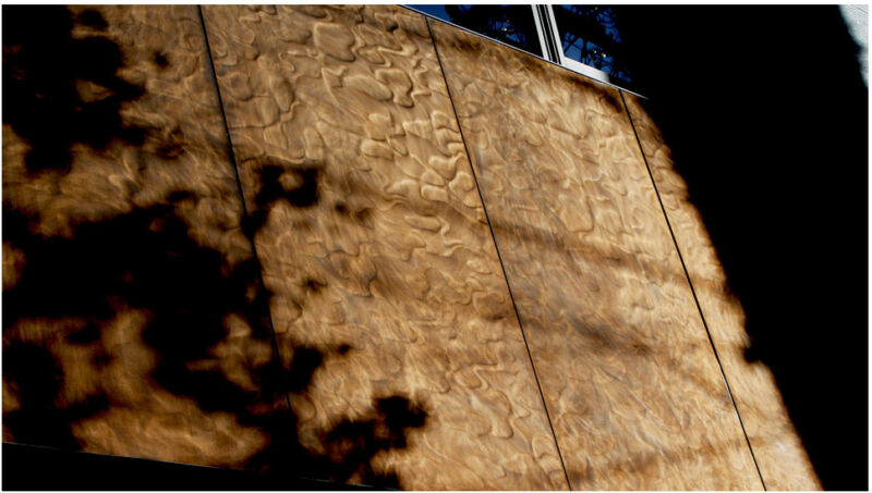 長期耐久性を持つチタンパネルは、身の回りの環境への負荷を減らしながら、高い意匠性を実現します。