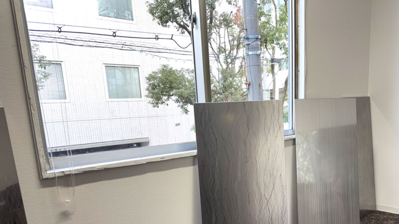 約500×1100mmの軽量パネルを自由に動かし、隣の金属との相性・角度・光の当たり方を、ご自身の手でお確かめください。