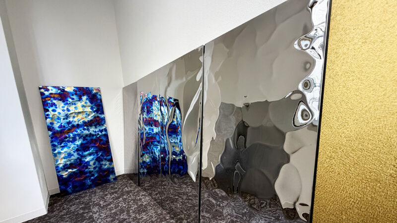 約500×1100mmの軽量パネルを自由に動かし、隣の金属との相性・角度・光の当たり方を、ご自身の手でお確かめください。