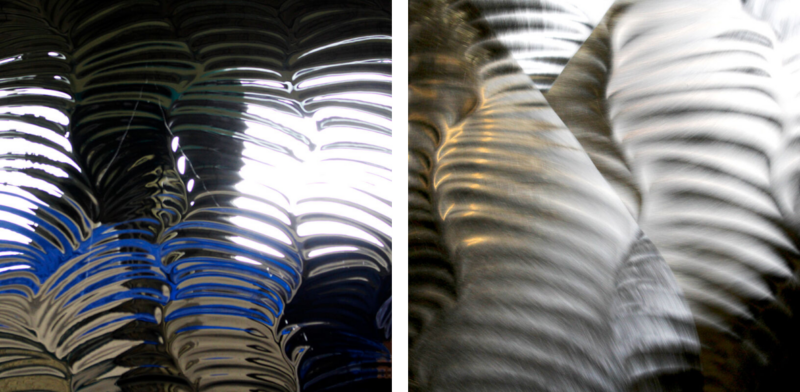 プレス加工による3Dステンレスパネルとは、思想も作り方も見え方も根本的に異なります。30年かけて蓄積した複合研磨技術は、鏡面・半光沢・半鏡面・マット、そしてそれらの共存 ― 金型では到達できない多彩な光の表情を、1枚のパネルの上に実現します。