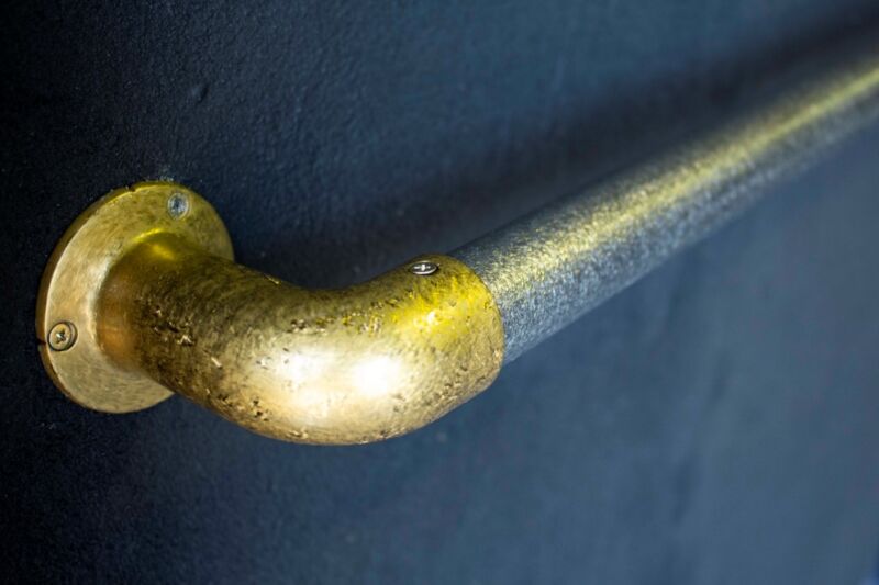 The uneven surface of the pipe provides a good grip, making it suitable for stair handrails.