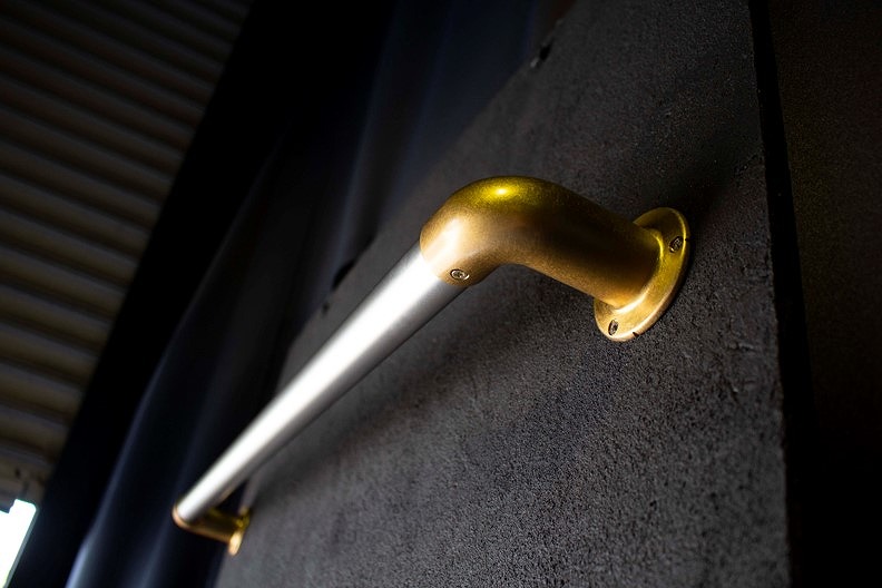 The material of this stair handrail is pure titanium. By using the “Final Finish Vacuum Titanium Vapor Deposition Technology (Monodzukuri Nippon Grand Award, Excellence Award Technology)”, we have created a titanium stair handrail with enhanced design and functionality.