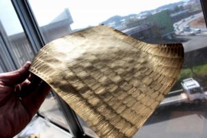 Therefore, we have developed a prototype of golden stainless steel mesh tatami.