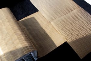 A very fine stainless steel mesh with a golden tatami design finish. When exposed to sunlight, it reflects very beautifully.