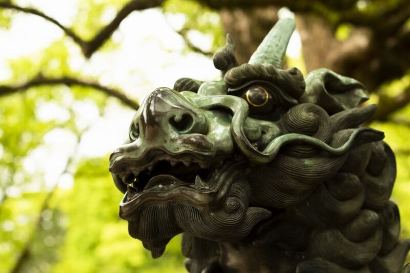 At Dazaifu Tenmangu Shrine, there is a bronze statue of a Qilin, the chief of all beasts that appear in the world of peace.