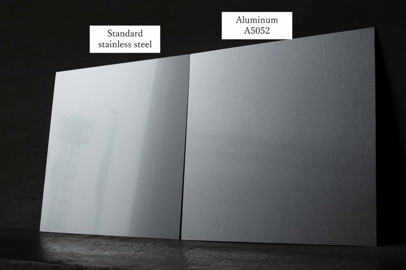 As you can see from the comparison with aluminum, the surface is not as smooth as stainless steel, but it is still there. Aluminum has a slight streak-like pattern.