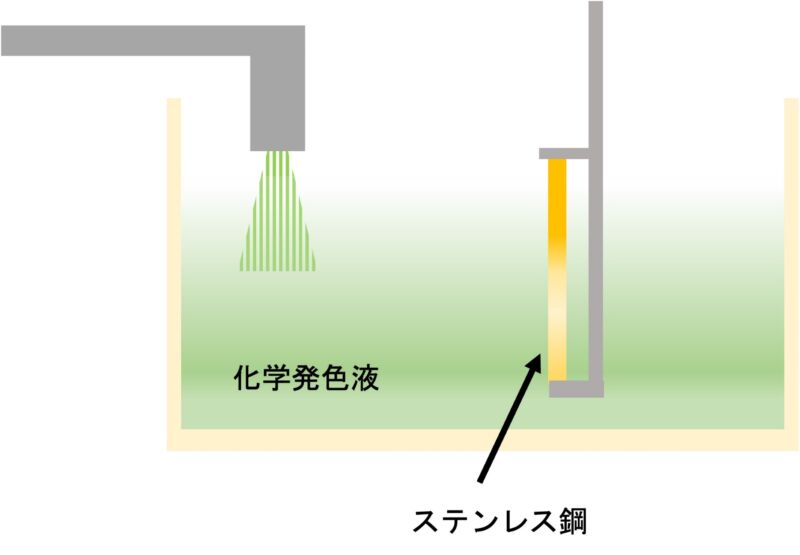 The above is just an image of how chemical coloring is produced. Stainless steel is immersed in this type of chemical coloring solution to grow a passive film.