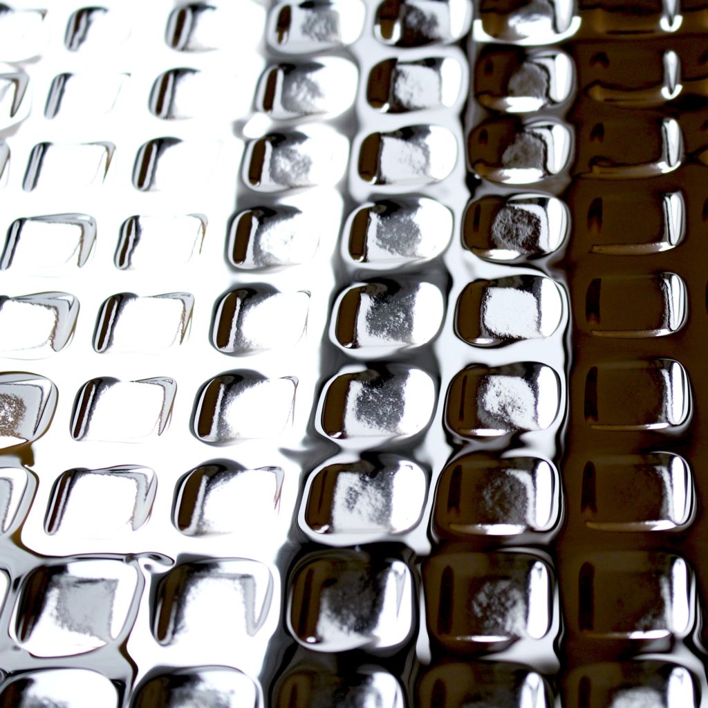 This name is given to mirror metals that look fantastic by expressing various three-dimensional shapes on metals, mainly stainless steel and titanium, such as the expression of water surface, water droplet, or scale pattern like blue sea wave.