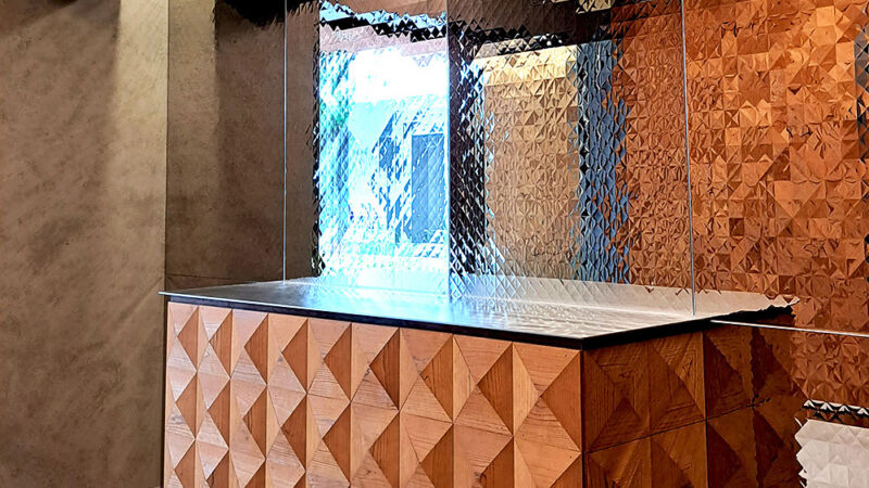 Not only 2D designing panels but also 3D designing panels and a combination of both panels are possible with our customizable and characteristic mirror panels.
