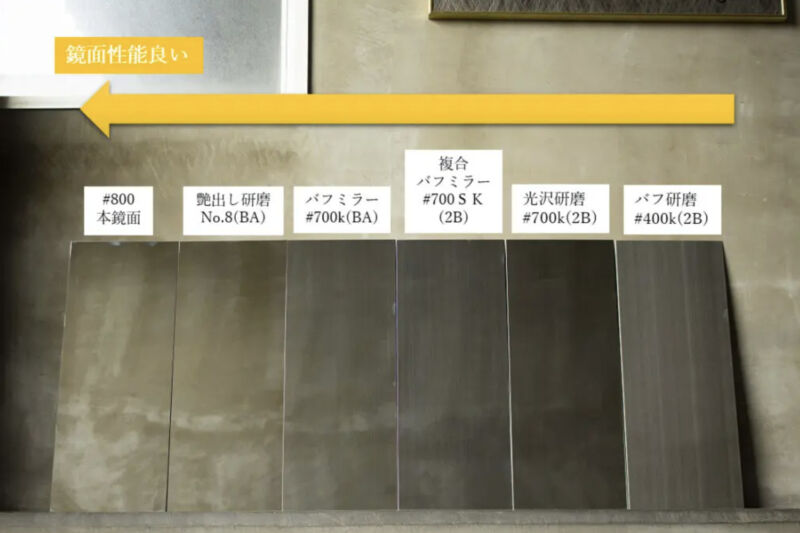 In addition to the standard mirror finish, we offer various finish options such as satin and hairline.