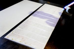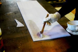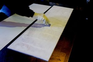 If there is a lump of adhesive, it may cause distortion in the area, so spread the adhesive so that it has an average thickness.