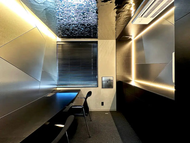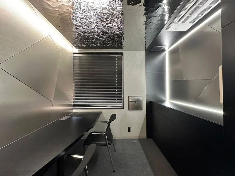 This metallic material is not merely a mirror, but a spatial accent woven from the interplay of light and shape.