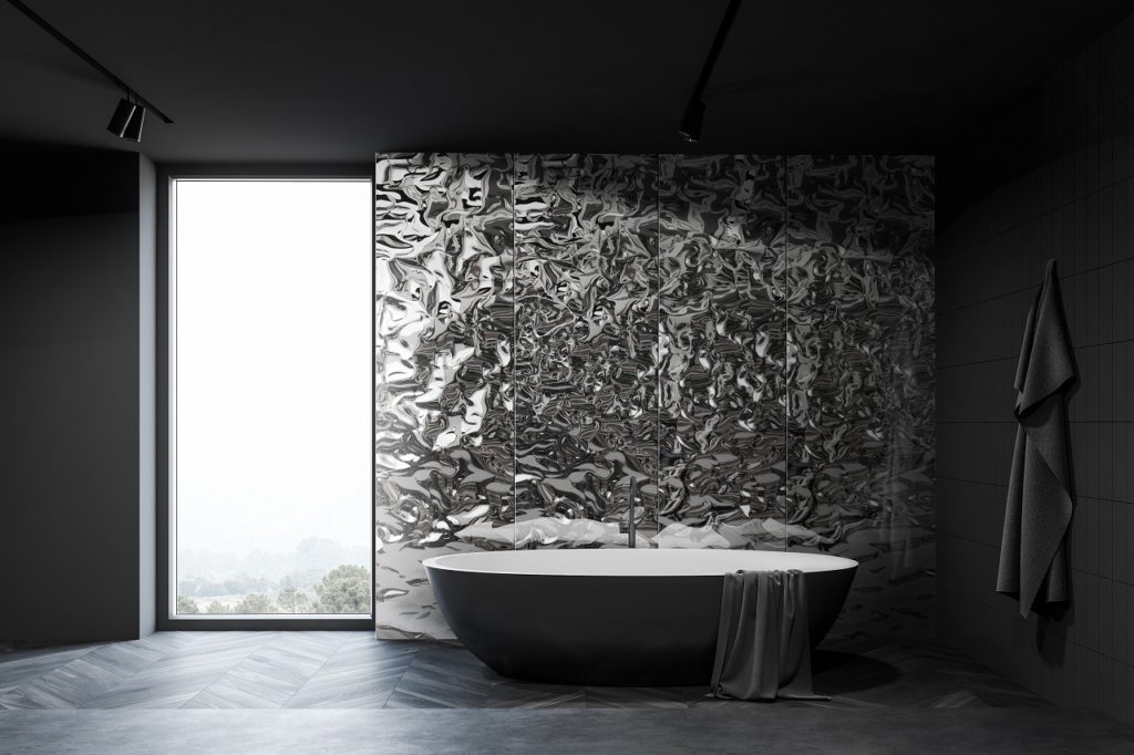 The beautiful rippling 3D stainless steel leads the bathroom into a fantasy space.