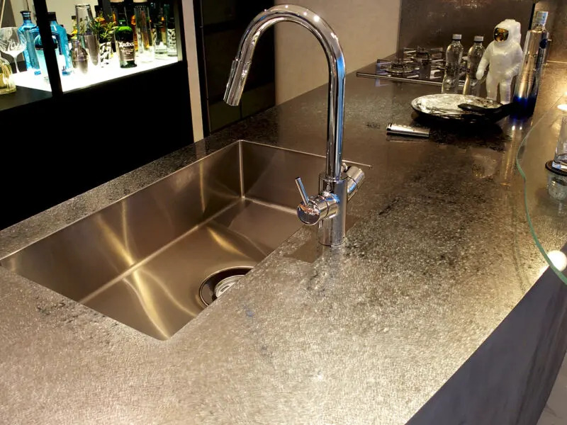 Luxury kitchen countertop and panels with beautiful powder snow finish / Gorgeous & Anti-Glare