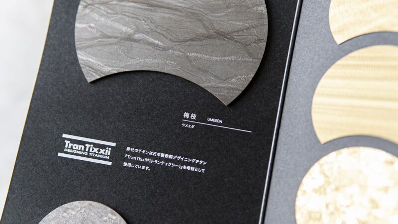 We also provide cut samples for Designing Titanium, but from a slightly different perspective, we have commercialized a sample book with a sense of presence, like a titanium material book.