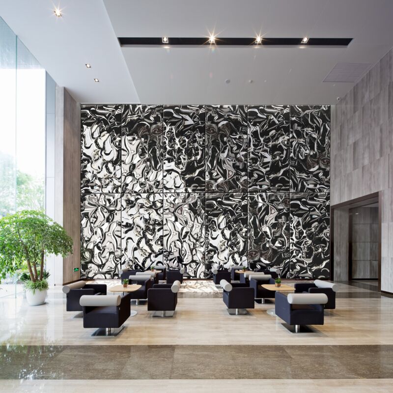 Proposal for Next-Generation Spatial Design: Stainless Steel Mysterious Mirror® Liquid Metal-Style Ceiling