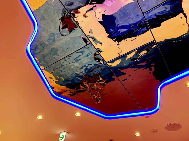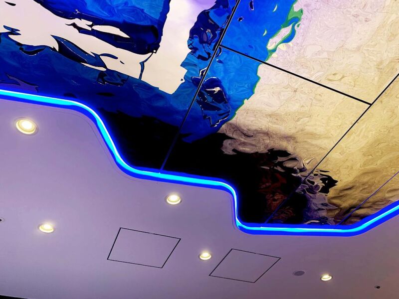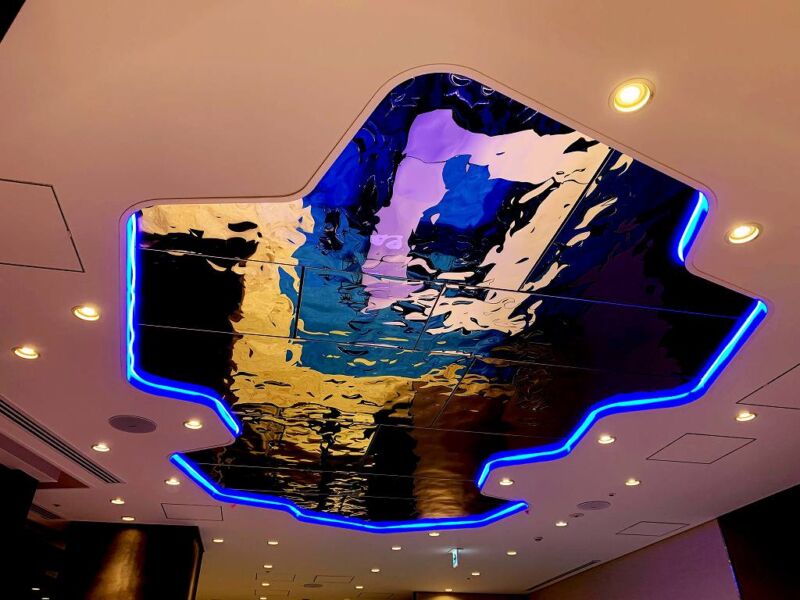 3D stainless steel mirror JEUX D’EAU was adopted for the ceiling of a hotel lounge.