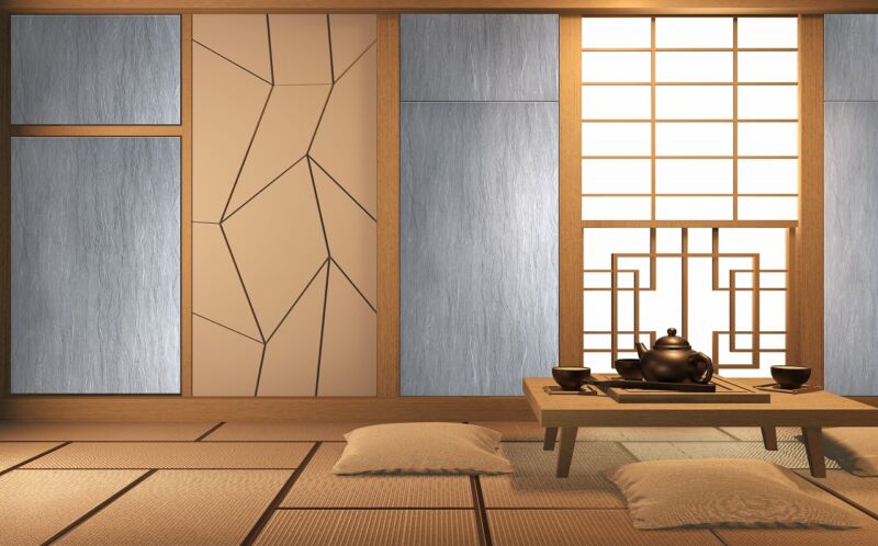 This is an image of a Japanese-style room with a heterogeneous Japanese stainless steel design finish, “Umeeda”.