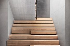 The back of the staircase leading to the second floor is expressed in shimmering.
