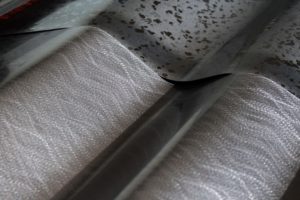 A kitchen top panel made of stainless steel is clean but easily scratched.