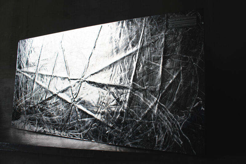 Wrinkle panel (シワパネル®︎):銀灰のシワ鋼( wrinkle steel of silver ash.)