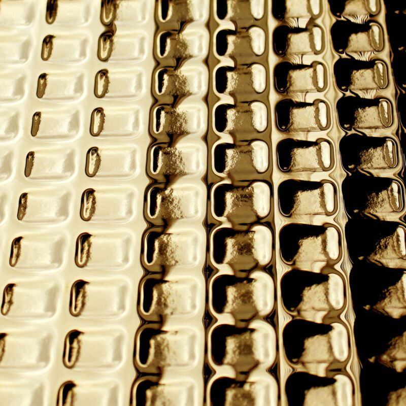 規則的に並ぶテクスチャーですが、微妙に少しづつ光沢が変化し、不均質さを演出します。